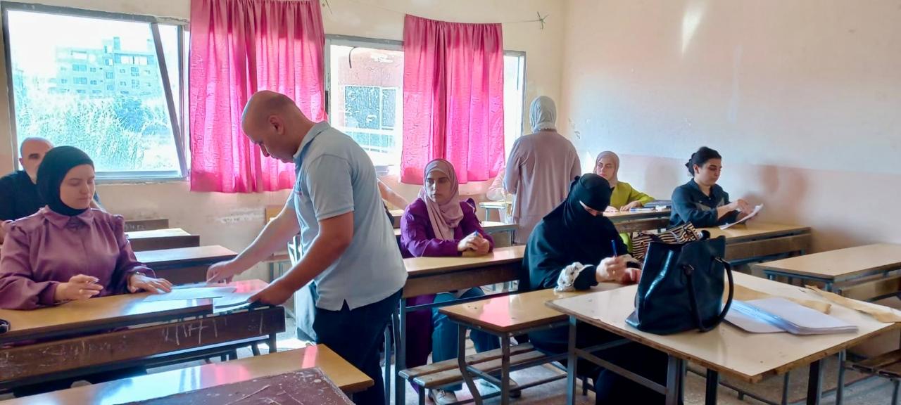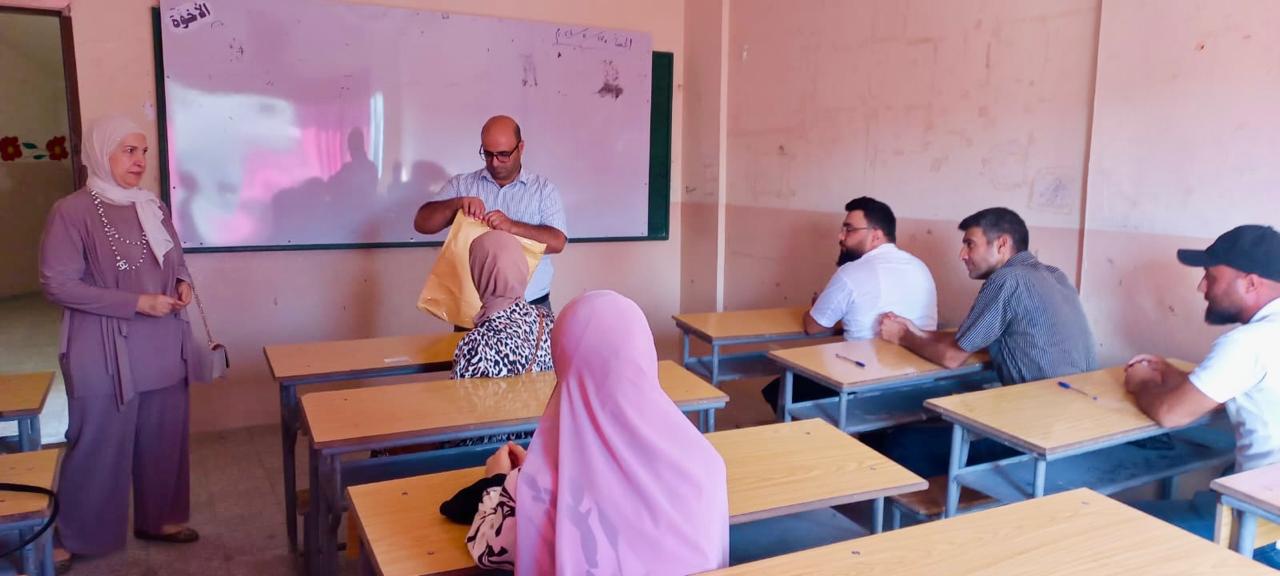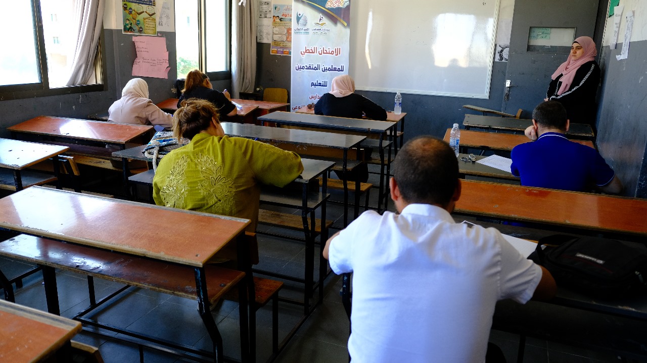 جانب من الامتحانات الخطية التي أجراها و أشرف عليها مكتب التعليم للمعلمين المتقدمين للتعليم في مدارس الكويت الخيرية و ذلك كخطوة مهمة و أساسية تسبق المقابلات الشفهية للناجحين في الامتحانات الخطية