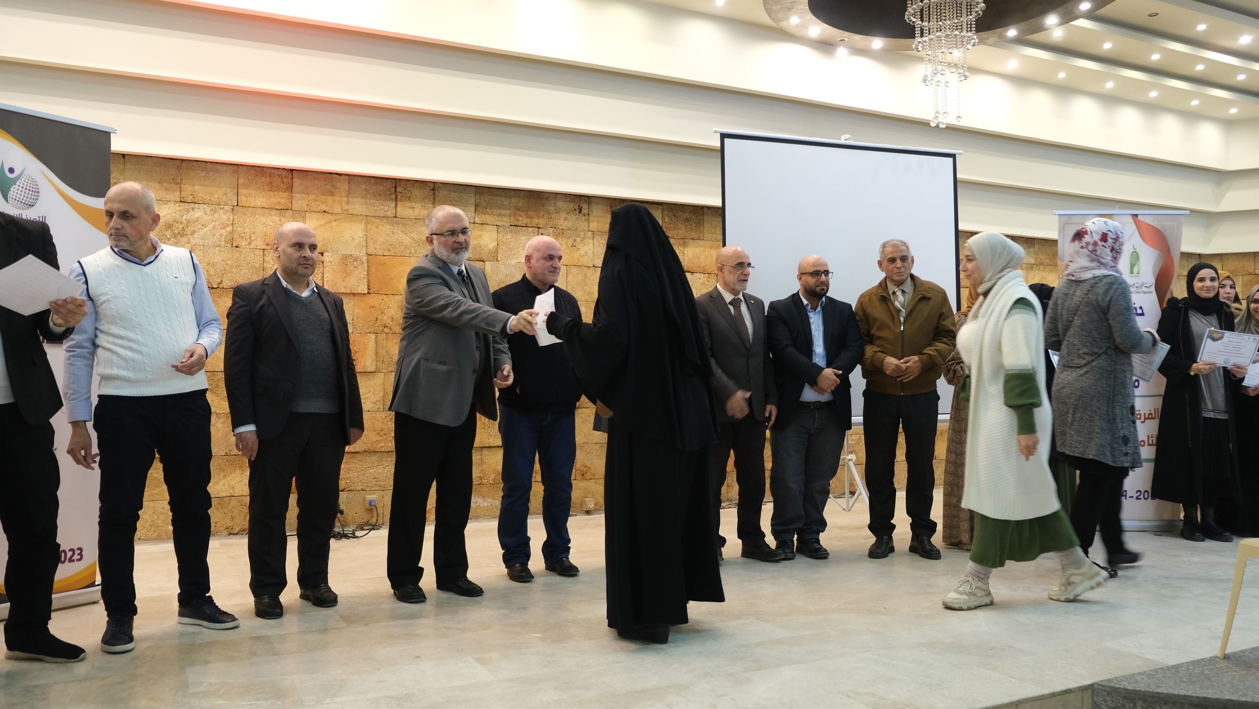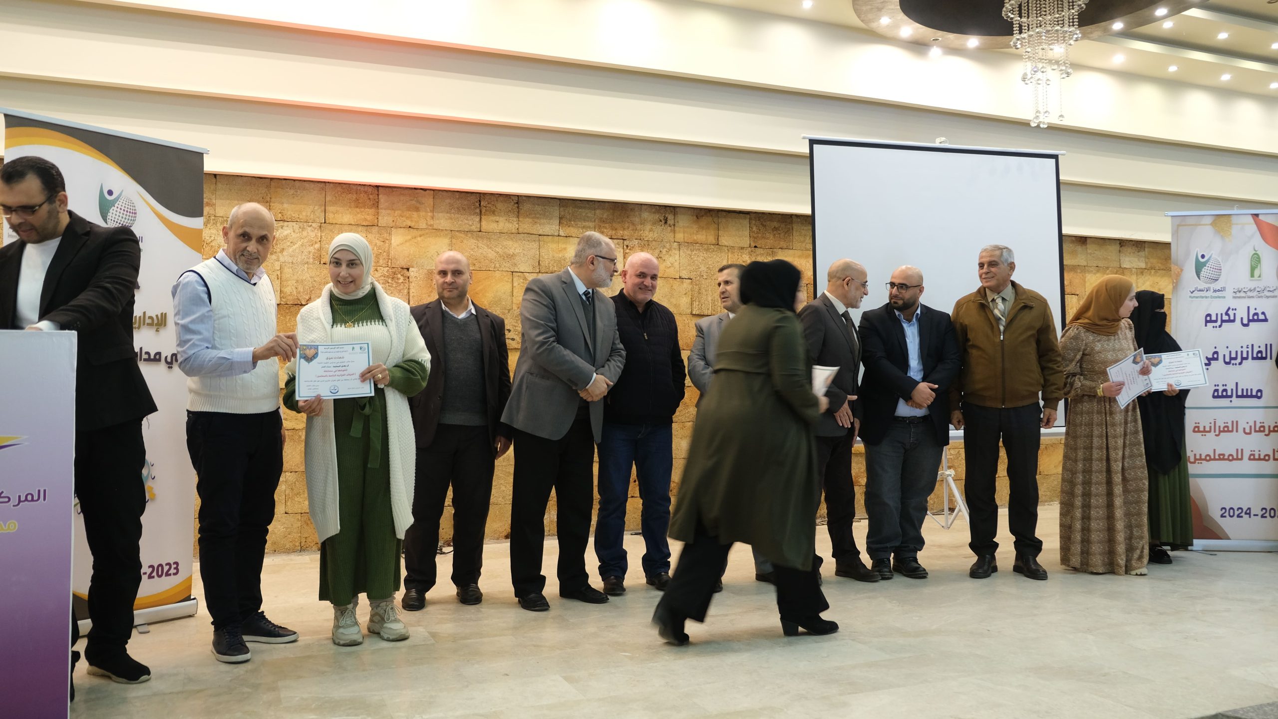 وبعدها فقرة تكريم للمعلمين الفائزين في مسابقات خطة البرامج والأنشطة التربوية ومن ضمنها مسابقة الفرقان القرآنية الخاصة بالمعلمين.