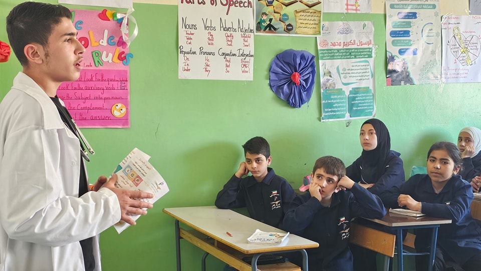 ● طلاب العناية التمريضية في معهد التميز المهني لتطوير مهاراتهم في مجال التوعية الصحية والتقديم.
